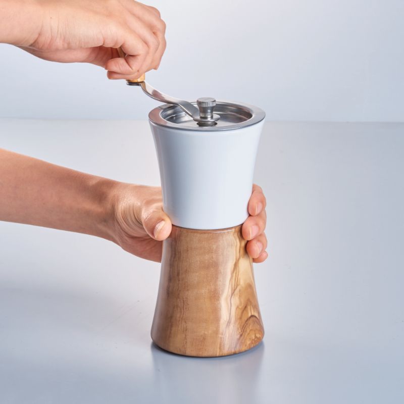 This elegantly crafted ceramic and olive wood coffee hand grinder is the latest addition to the Hario Olive Wood range. This stunning design is a combination of both the classic Skerton Grinder mixed with the Mini Mill, except it has a sleeker, more comfortable design that fits comfortably in your hand.